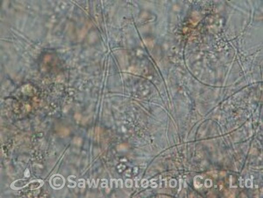 果樹系のペクチン等が多くなると、放線菌・糸状菌が増加し、活性汚泥菌は活性度をなくし、細かく解体する。